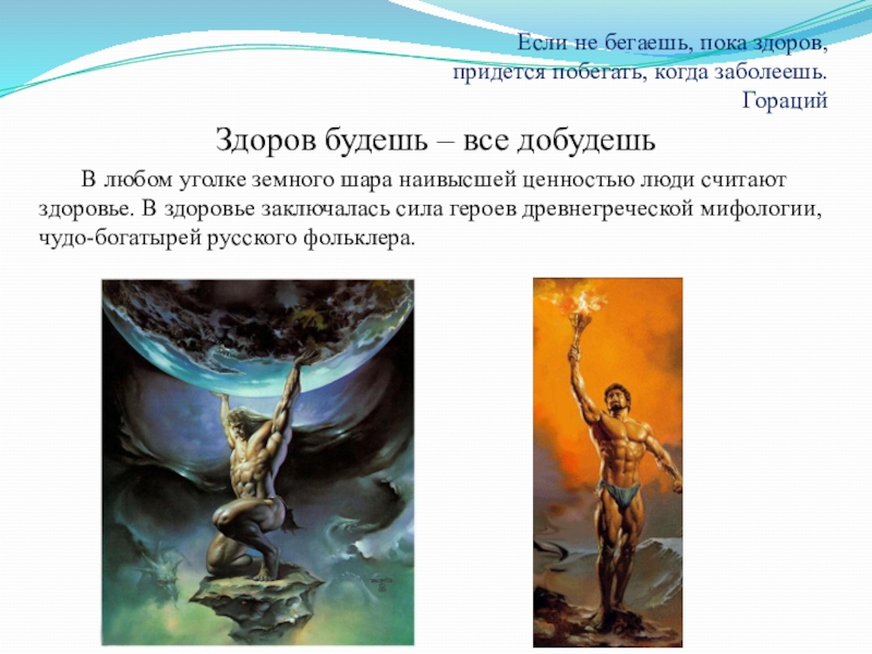 В любом уголке земного шара наивысшей ценностью люди считают здоровье. В здоровье заключалась сила героев древнегреческой мифологии, чудо-богатырей русского фольклера.