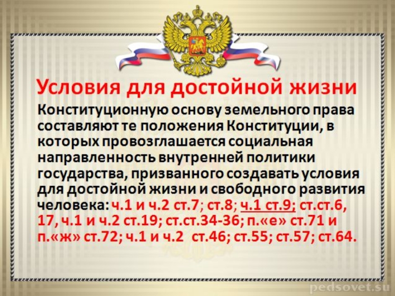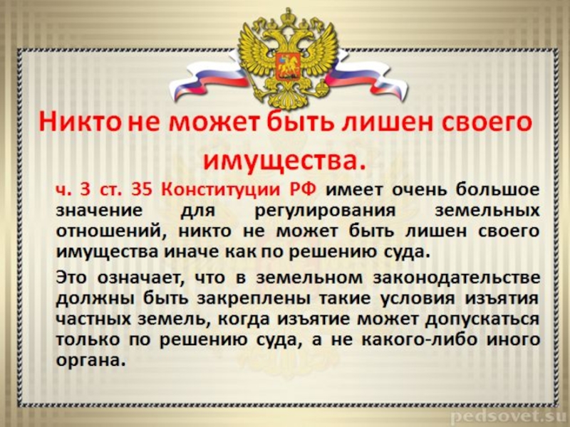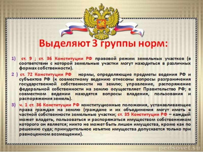 Презентация, доклад по Земельному праву на тему : Конституционные основы земельного права