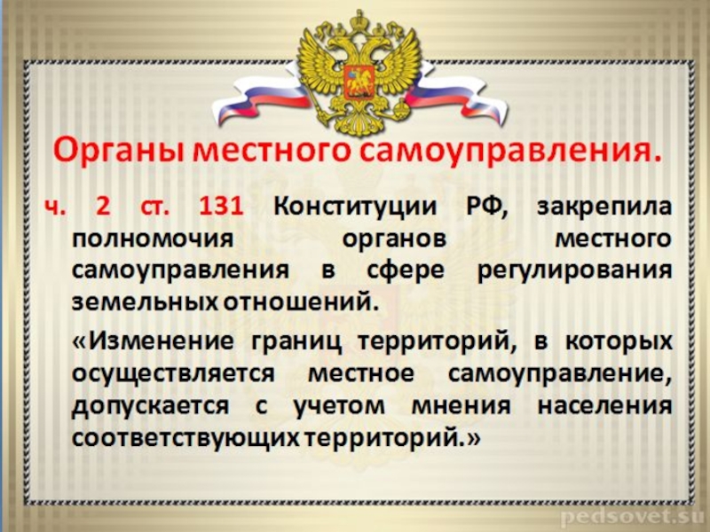 Презентация по Земельному праву на тему : Конституционные основы земельного права Разное