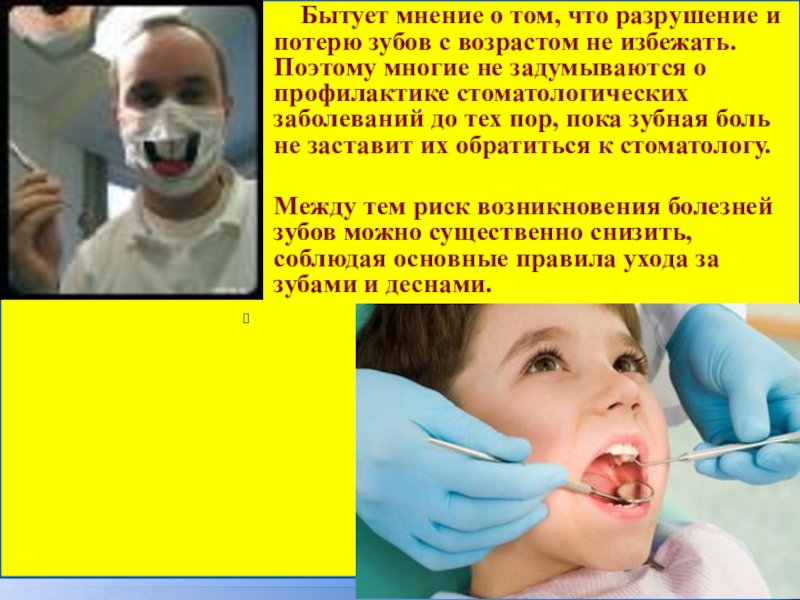 с возрастом не избежать. Поэтому многие не задумываются о профилактике стоматологических заболеваний до тех пор, пока зубная боль не заставит их обратиться к стоматологу.