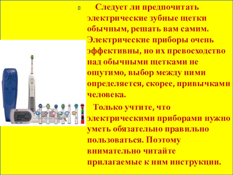 самим. Электрические приборы очень эффективны, но их превосходство над обычными щетками не ощутимо, выбор между ними определяется, скорее, привычками человека.