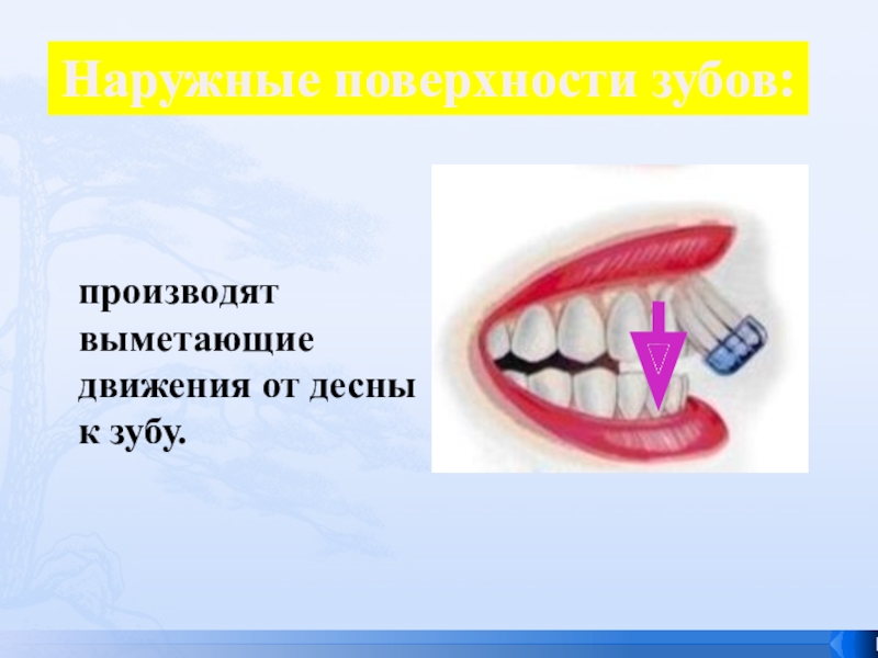 производят выметающие движения от десны к зубу.
