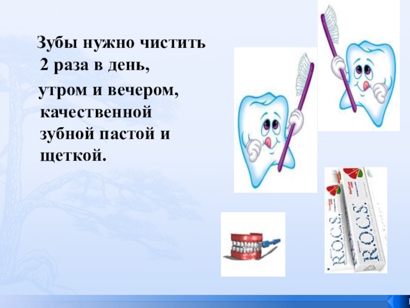 Слайд 37 Зубы нужно чистить 2 раза в день,