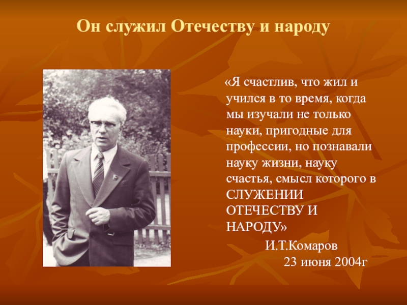 Он служил Отечеству и народу  «Я счастлив, что жил и учился в то время, когда мы