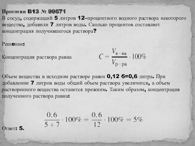 некоторого вещества, добавили 7 литров воды. Сколько процентов составляет концентрация получившегося раствора?