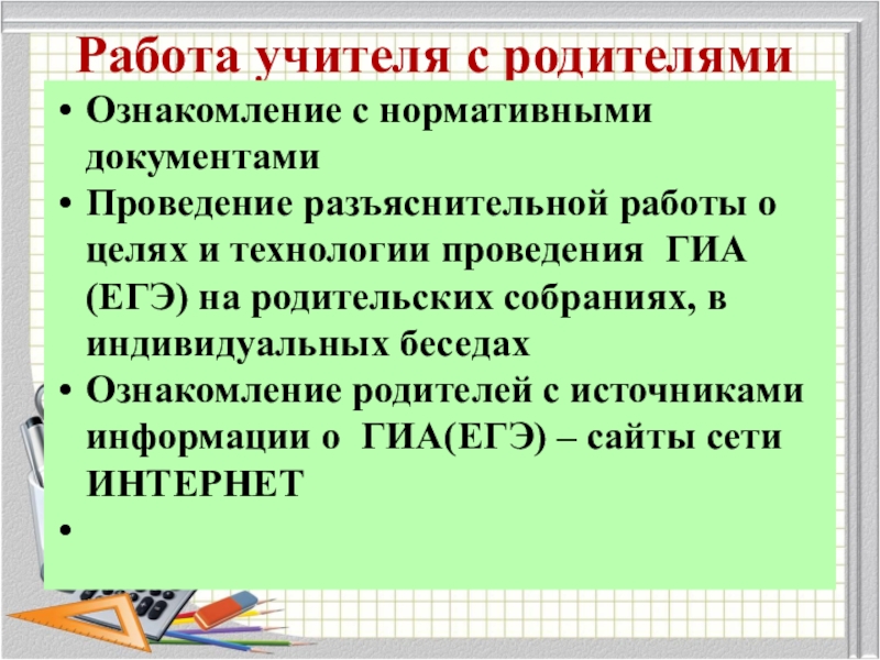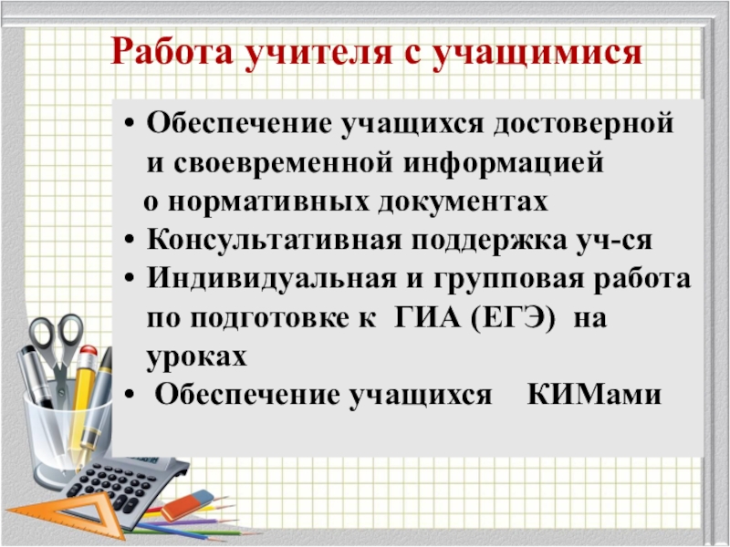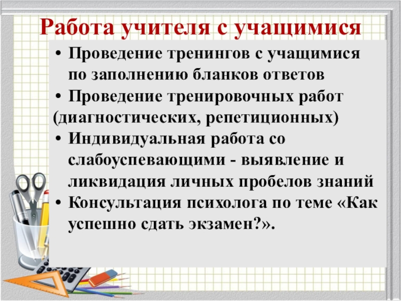 Посещение обучающих тренингов для педагогов по решению заданий ЕГЭ и ГИА с поэтапным разбором типичных ошибок учащихся