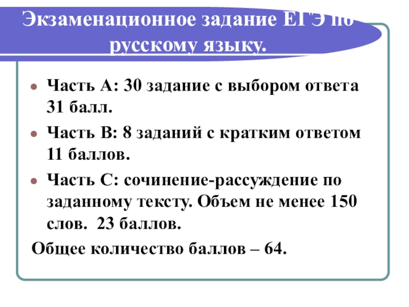 Слайд 2Экзаменационное задание ЕГЭ по русскому языку.