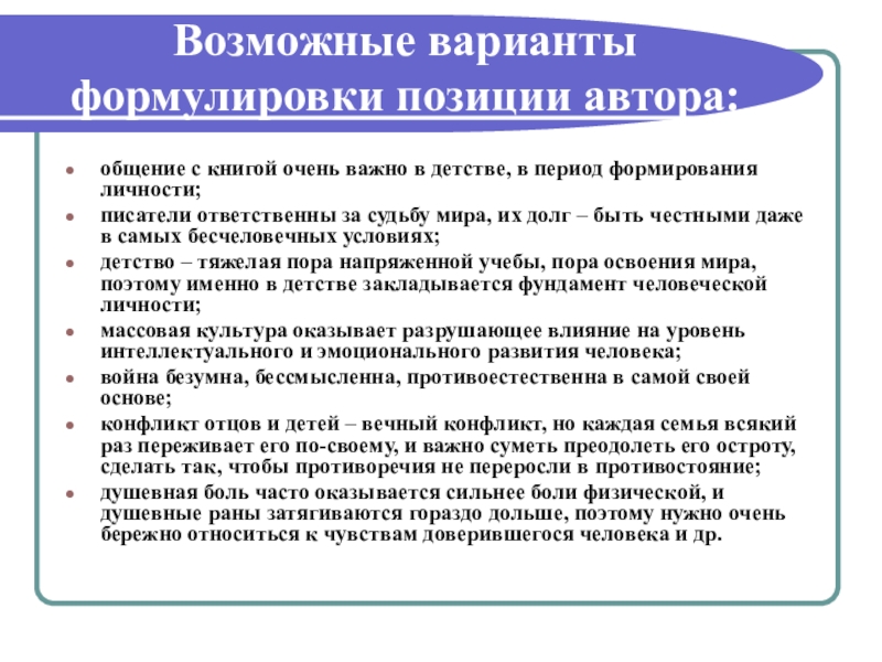 Слайд 9Возможные варианты формулировки проблемы исходного текста: