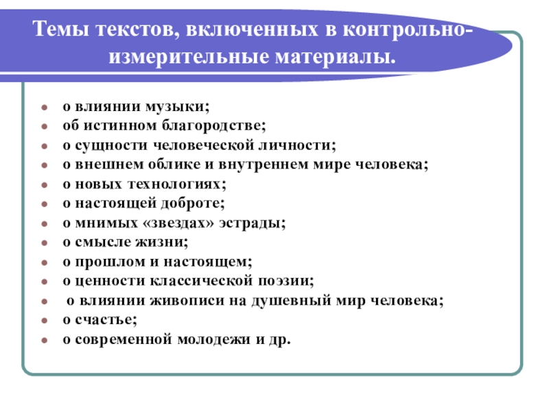 Слайд 3Темы текстов, включенных в контрольно-измерительные материалы.