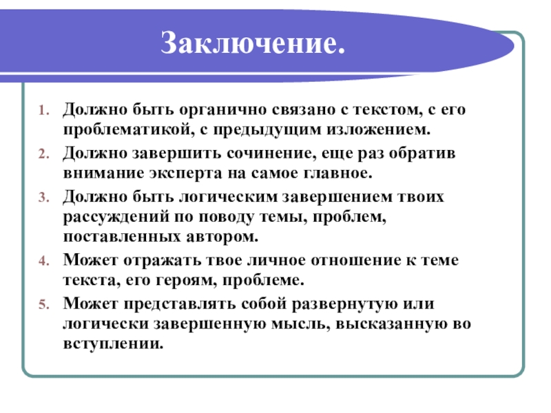 Должно завершить сочинение, еще раз обратив внимание эксперта на самое главное.