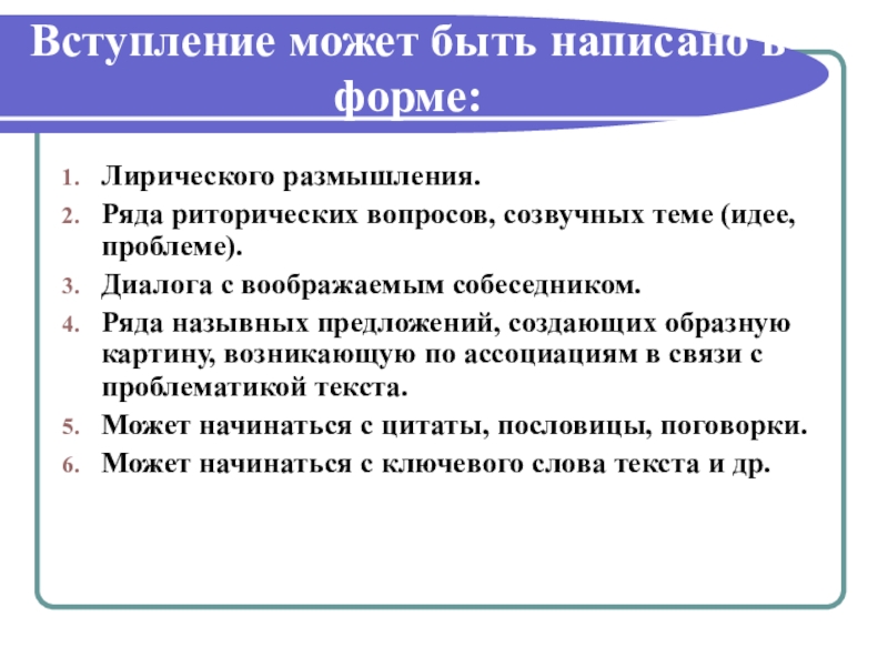 Может представлять собой развернутую или логически завершенную мысль, высказанную во вступлении.