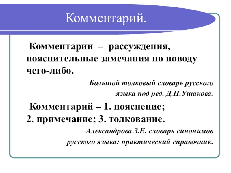 Комментарии – рассуждения, пояснительные замечания по поводу чего-либо.