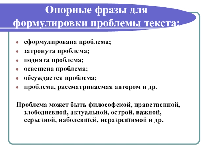 Слайд 10Опорные фразы для формулировки проблемы текста: