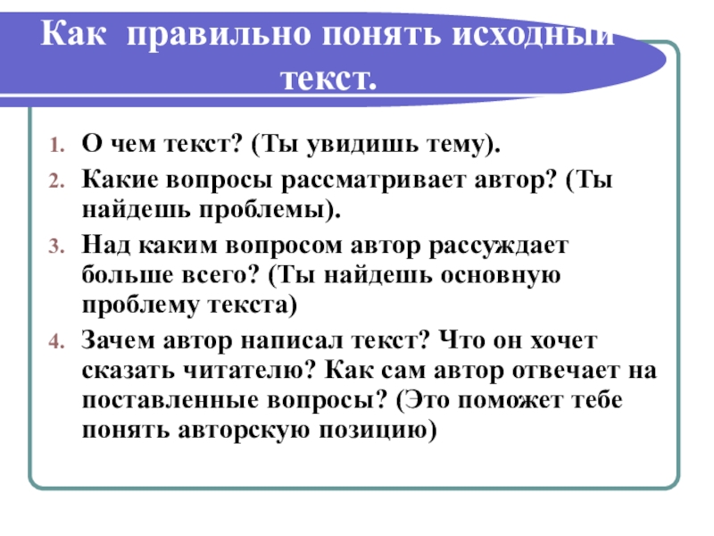 Зачем автор написал текст? Что он хочет сказать читателю? Как сам автор отвечает на поставленные вопросы? (Это поможет тебе понять авторскую позицию)