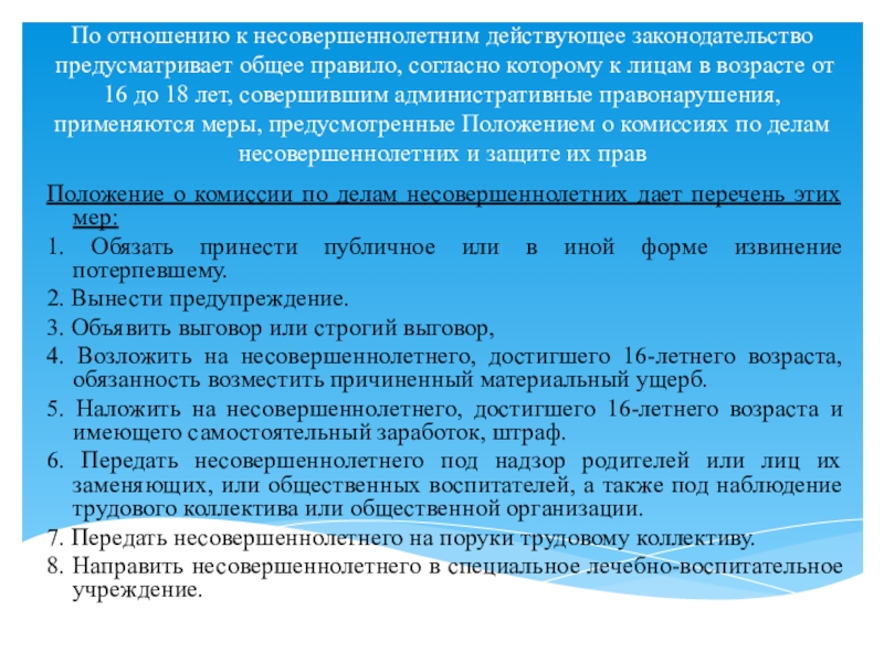Положение о комиссии по делам несовершеннолетних дает перечень этих мер: