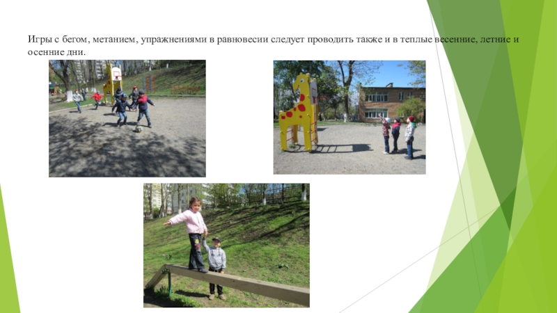 Игры с бегом, метанием, упражнениями в равновесии следует проводить также и