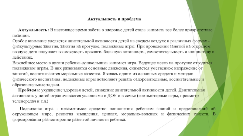 Подвижная игра - незаменимое средство пополнения ребенком знаний и представлений об окружающем мире, развития мышления, ценных, морально-волевых и физических качеств. В формировании разносторонне развитой личности ребенка.