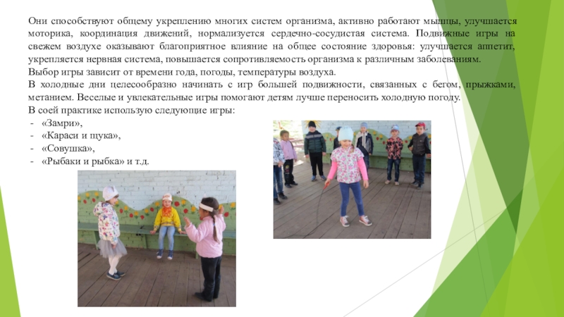 Хочу отметить особенности проведения подвижных игр на свежем воздухе: