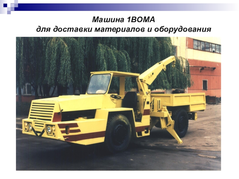 Слайд 13Машина 1ВОМА для доставки материалов и оборудования