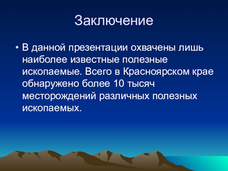В данной презентации охвачены лишь наиболее известные полезные ископаемые. Всего в