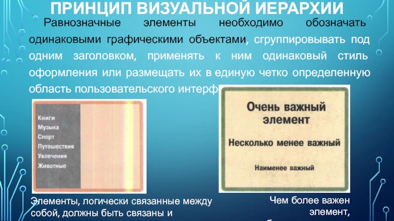 Элементы, логически связанные между собой, должны быть связаны и визуально.