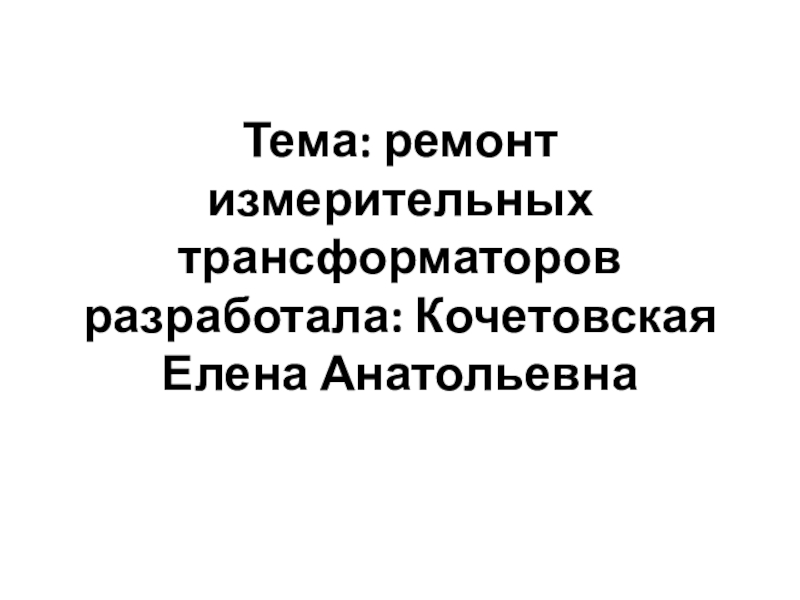 Слайд 1Тема: ремонт измерительных трансформаторов
