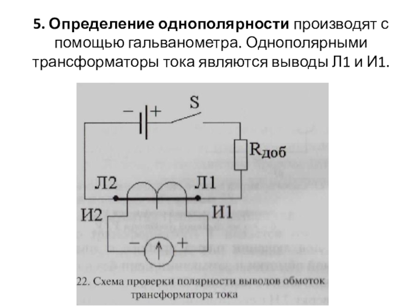 Слайд 125. Определение однополярности производят с помощью гальванометра. Однополярными трансформаторы тока являются