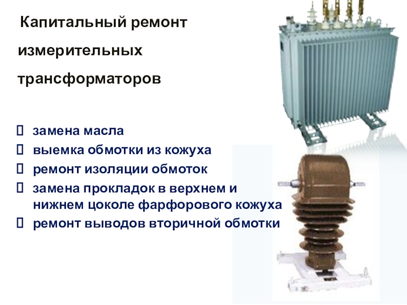 Слайд 21 Капитальный ремонт измерительных трансформаторов