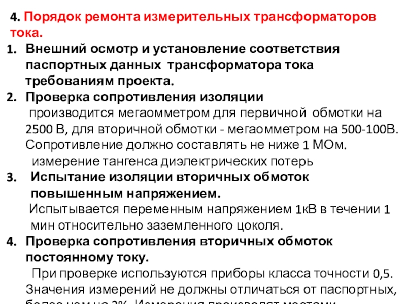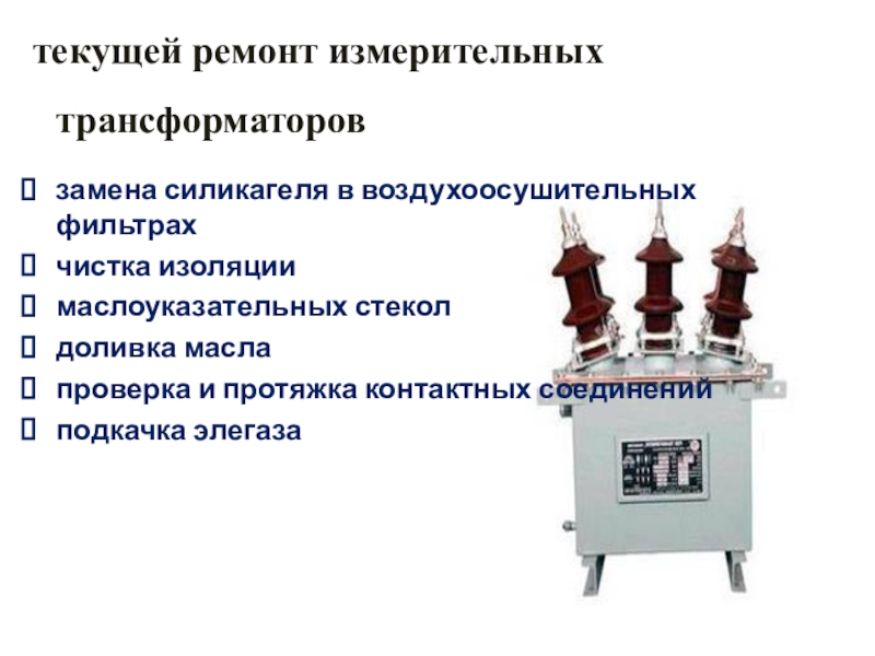 Слайд 20 текущей ремонт измерительных трансформаторов