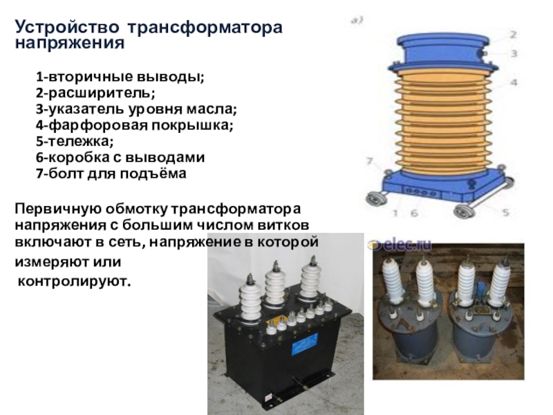 Слайд 154.Назначение измерительных трансформаторов напряжения