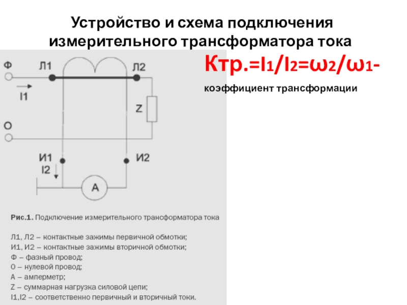Слайд 6 Устройство и схема подключения измерительного трансформатора тока