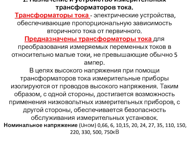 Слайд 31. Назначение и устройство измерительных трансформаторов тока.