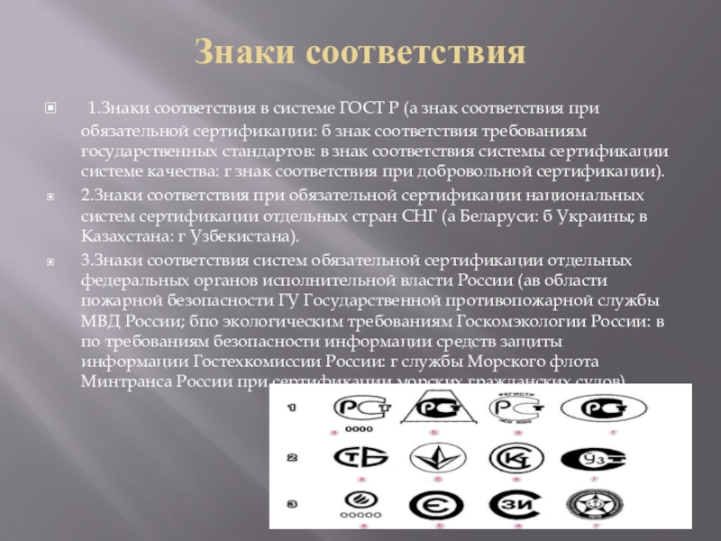 1.Знаки соответствия в системе ГОСТ Р (а знак соответствия