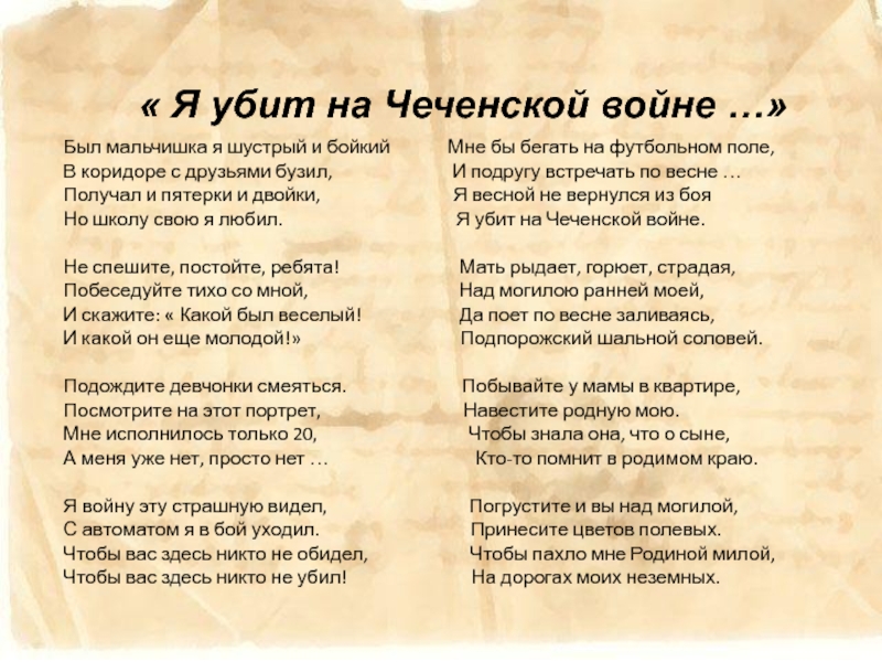 Получал и пятерки и двойки, Я весной не вернулся из боя