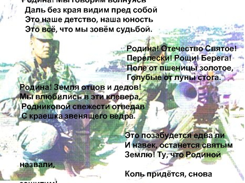Чтобы вас здесь никто не обидел, Чтобы пахло мне Родиной милой,