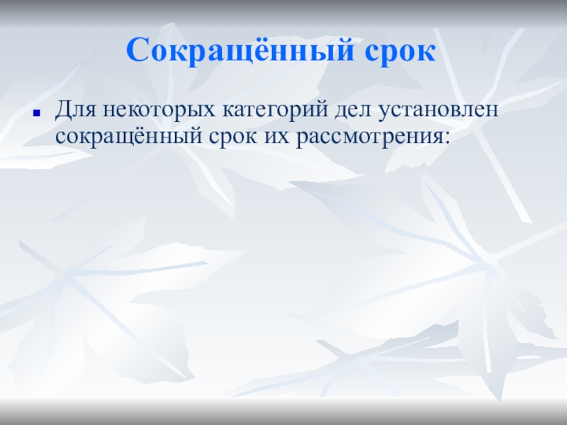 Для некоторых категорий дел установлен сокращённый срок их рассмотрения: