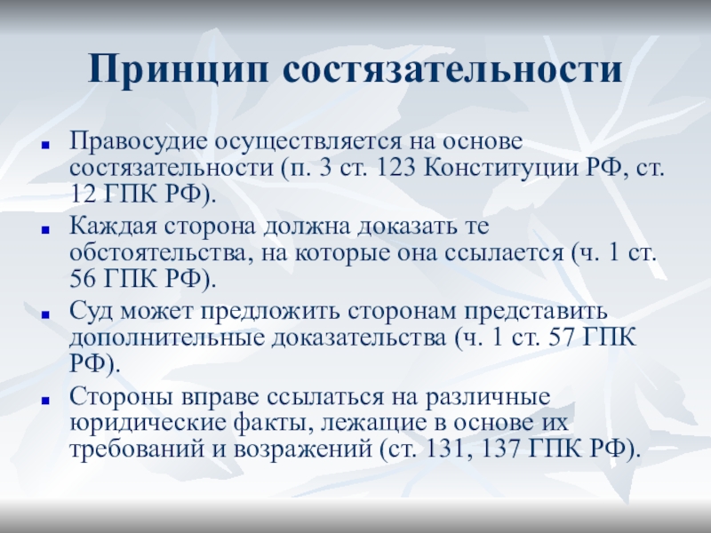 Правосудие осуществляется на основе состязательности (п. 3 ст. 123 Конституции