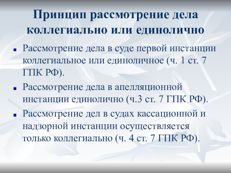 коллегиальное или единоличное (ч. 1 ст. 7 ГПК РФ).