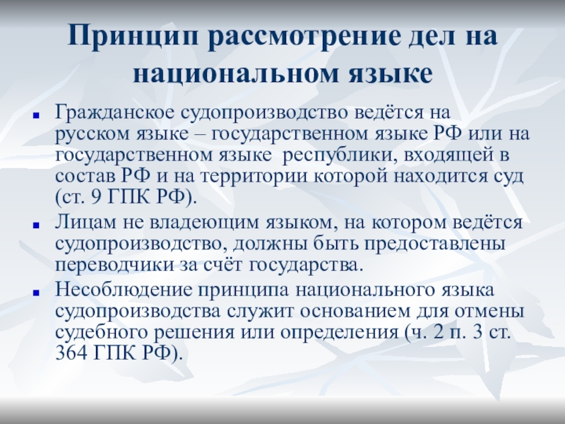 Слайд 22Принцип рассмотрение дел на национальном языке