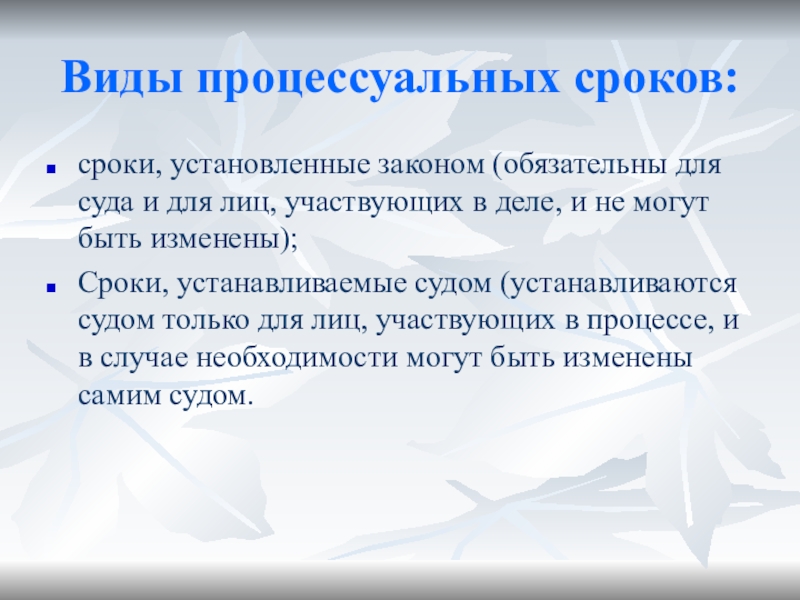 Сроки, устанавливаемые судом (устанавливаются судом только для лиц, участвующих в процессе, и в случае необходимости могут быть изменены самим судом.