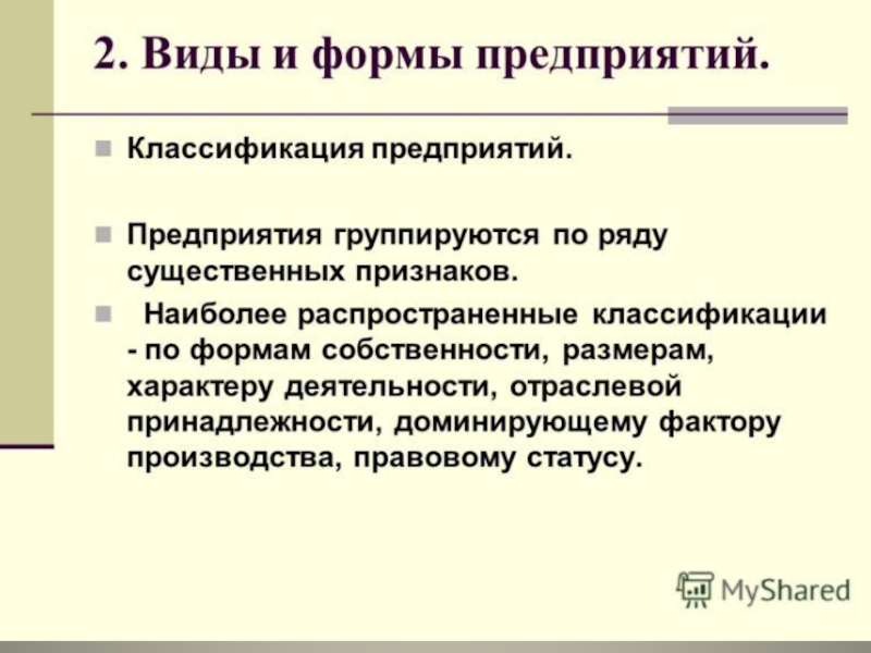 План 1.Понятие предприятия 2.Виды и формы предприятий 3.Характеристика и структура предприятия