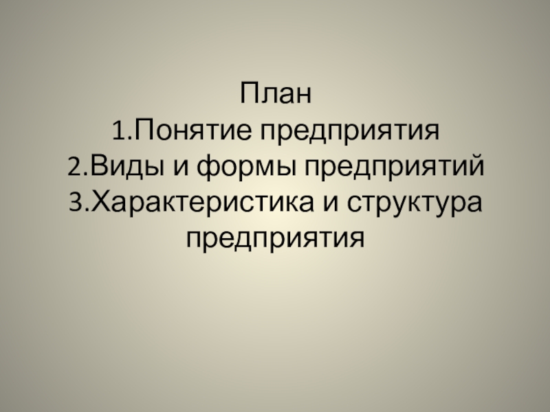 План 1.Понятие предприятия  2.Виды и формы предприятий  3.Характеристика и структура предприятия