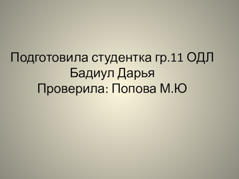 Слайд 17Подготовила студентка гр.11 ОДЛ Бадиул Дарья Проверила: Попова М.Ю