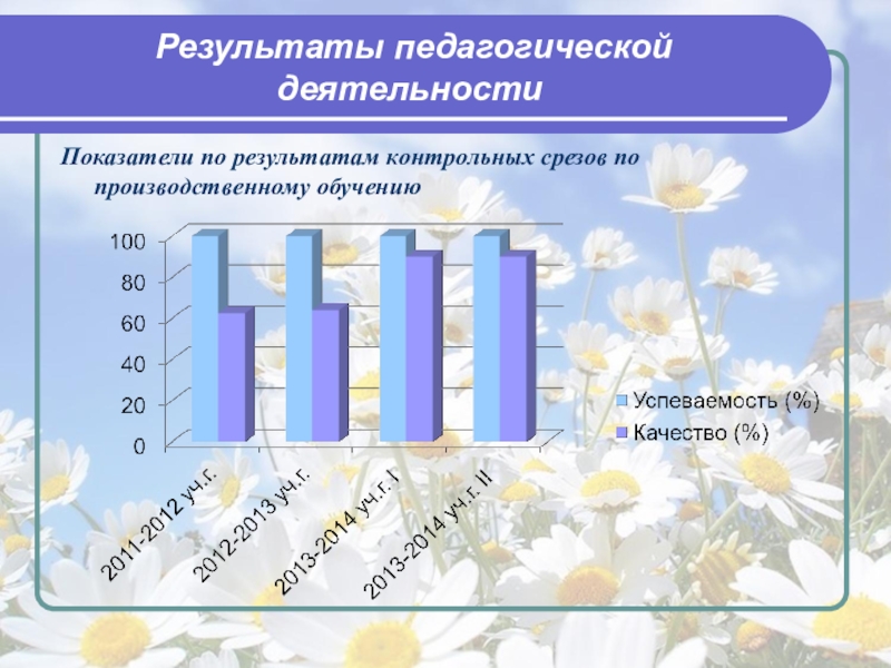 Результаты педагогической деятельностиПоказатели по результатам контрольных срезов по производственному обучению