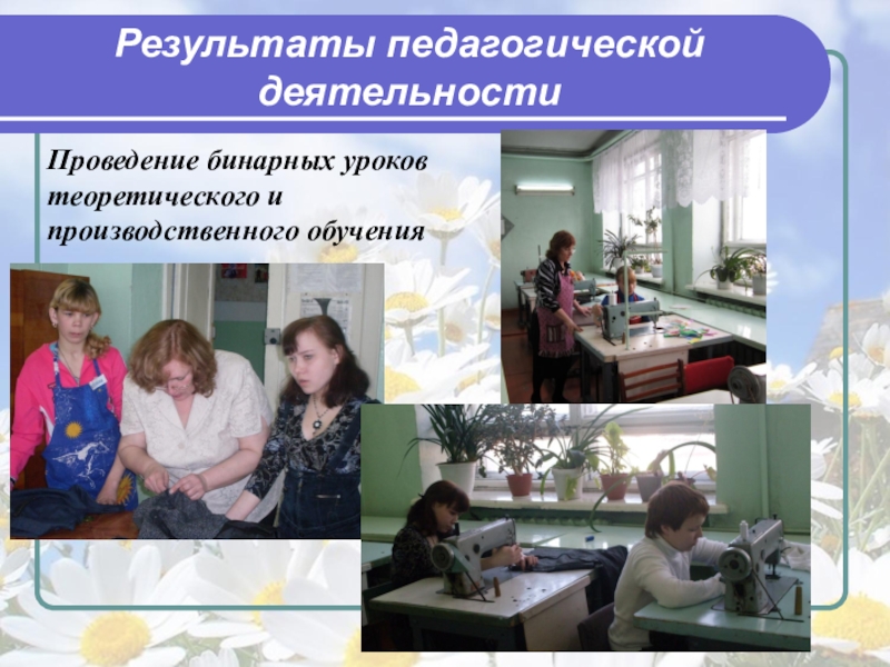 Результаты педагогической деятельностиПроведение бинарных уроков теоретического и производственного обучения