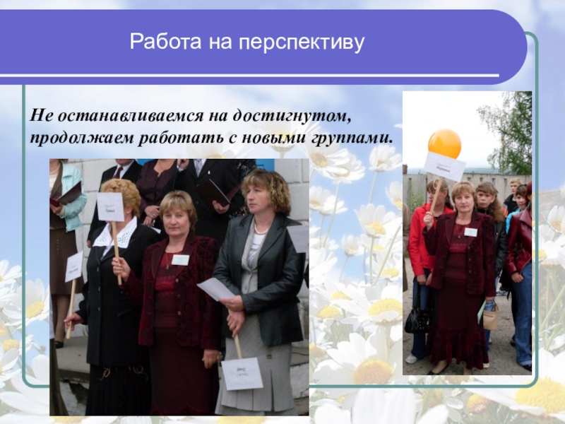 Работа на перспективуНе останавливаемся на достигнутом, продолжаем работать с новыми группами.