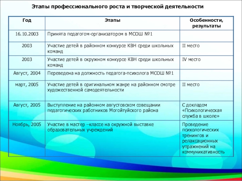 Слайд 19Этапы профессионального роста и творческой деятельности