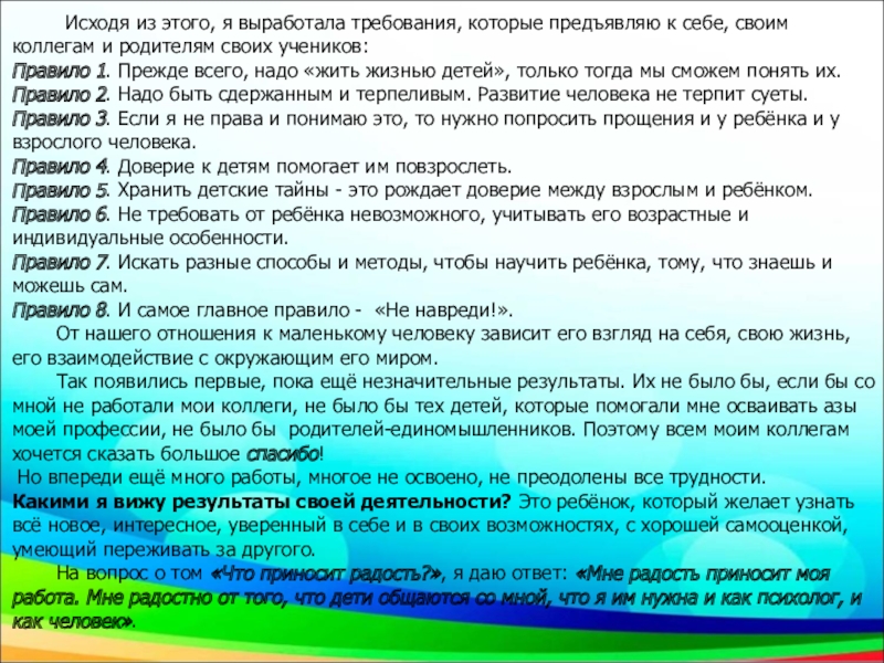 требования, которые предъявляю к себе, своим коллегам и родителям своих учеников: