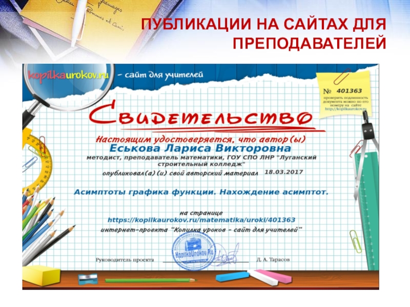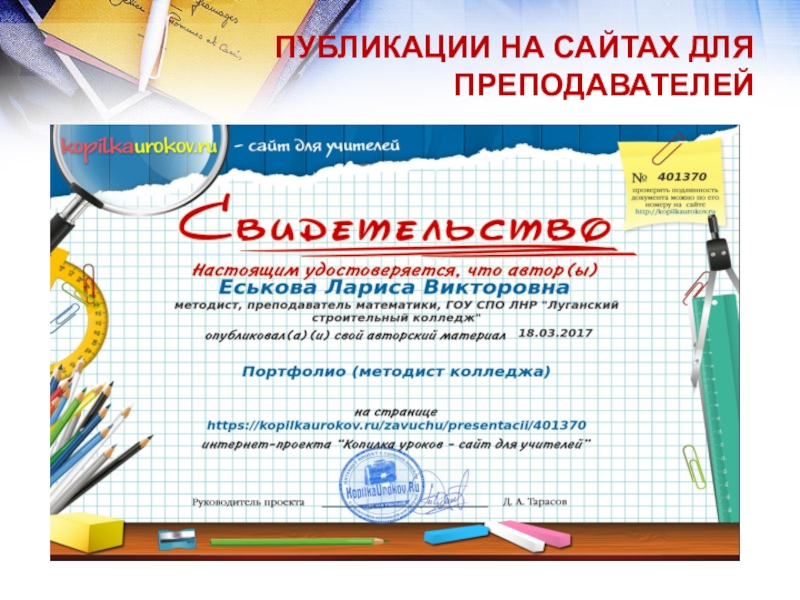 Это сайт презентаций, где можно хранить и обмениваться своими презентациями, докладами, проектами, шаблонами в формате PowerPoint с другими пользователями. Мы помогаем школьникам, студентам, учителям, преподавателям хранить и обмениваться учебными материалами.