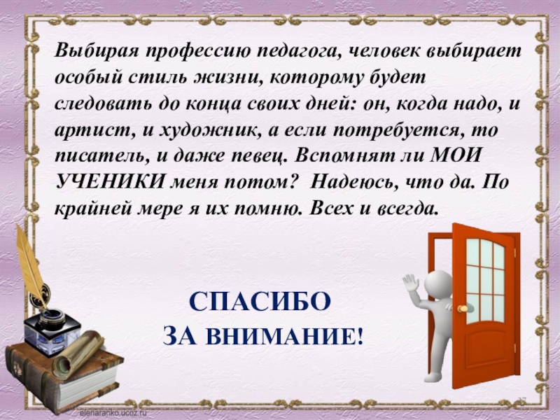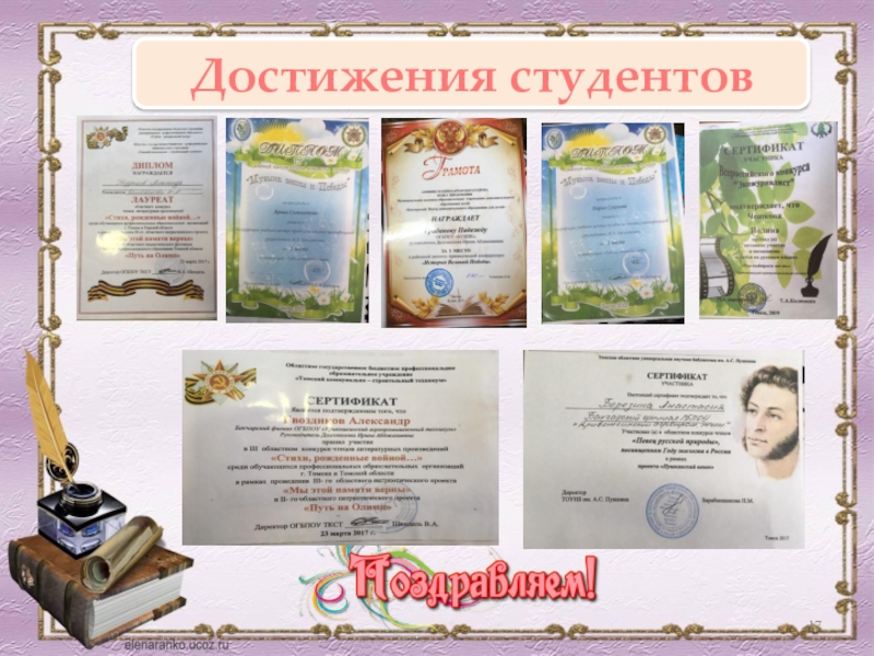 Это сайт презентаций, где можно хранить и обмениваться своими презентациями, докладами, проектами, шаблонами в формате PowerPoint с другими пользователями. Мы помогаем школьникам, студентам, учителям, преподавателям хранить и обмениваться учебными материалами.